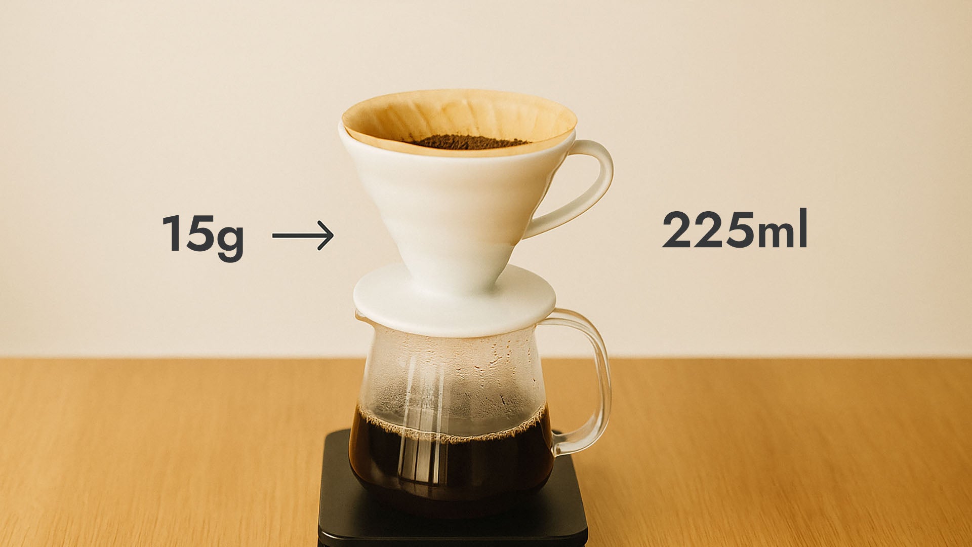 この1:15の比率は、ドリップコーヒーの黄金比です。濃すぎず、水っぽすぎず、すっきりとした風味豊かな一杯が作れます。