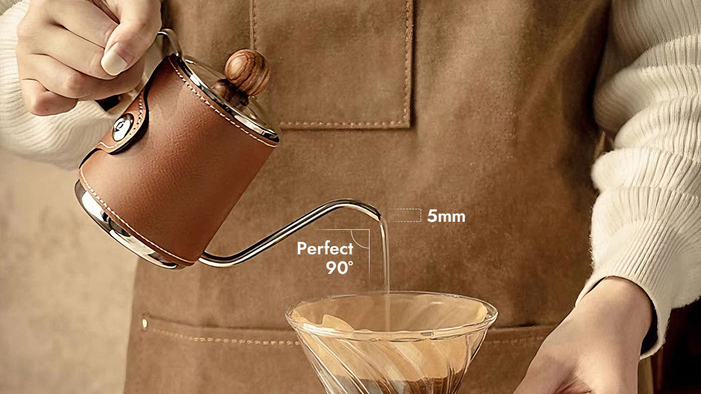 One of the most critical aspects of pour-over coffee is achieving a controlled and consistent water flow. A gooseneck kettle, like the iKoffy Premium Leather Sleeve Pour-Over Kettle, allows you to pour with pinpoint accuracy. This precision ensures the coffee grounds are evenly saturated, promoting balanced extraction and unlocking the complex flavors in your beans.
