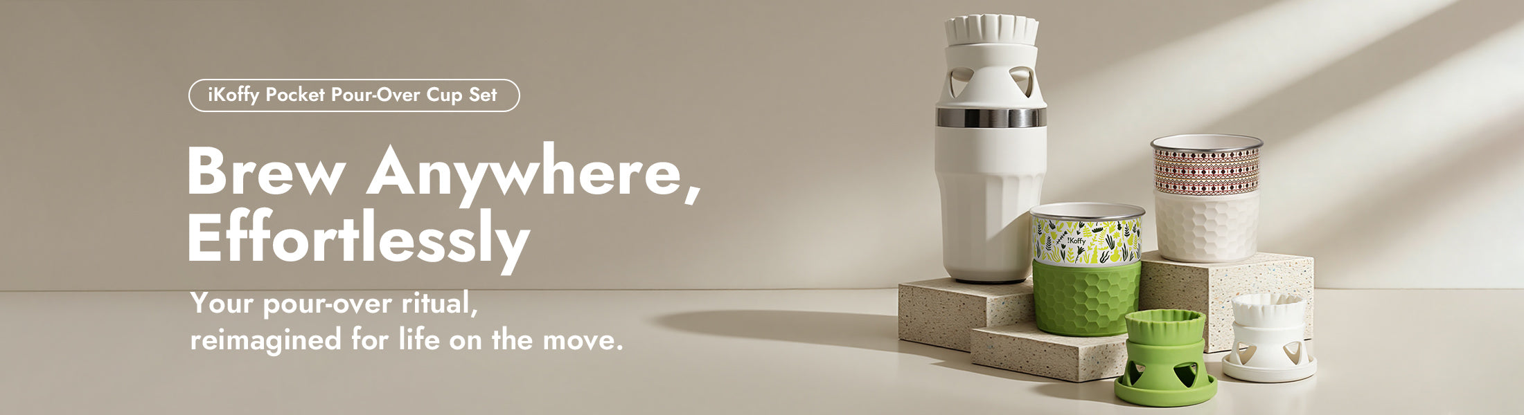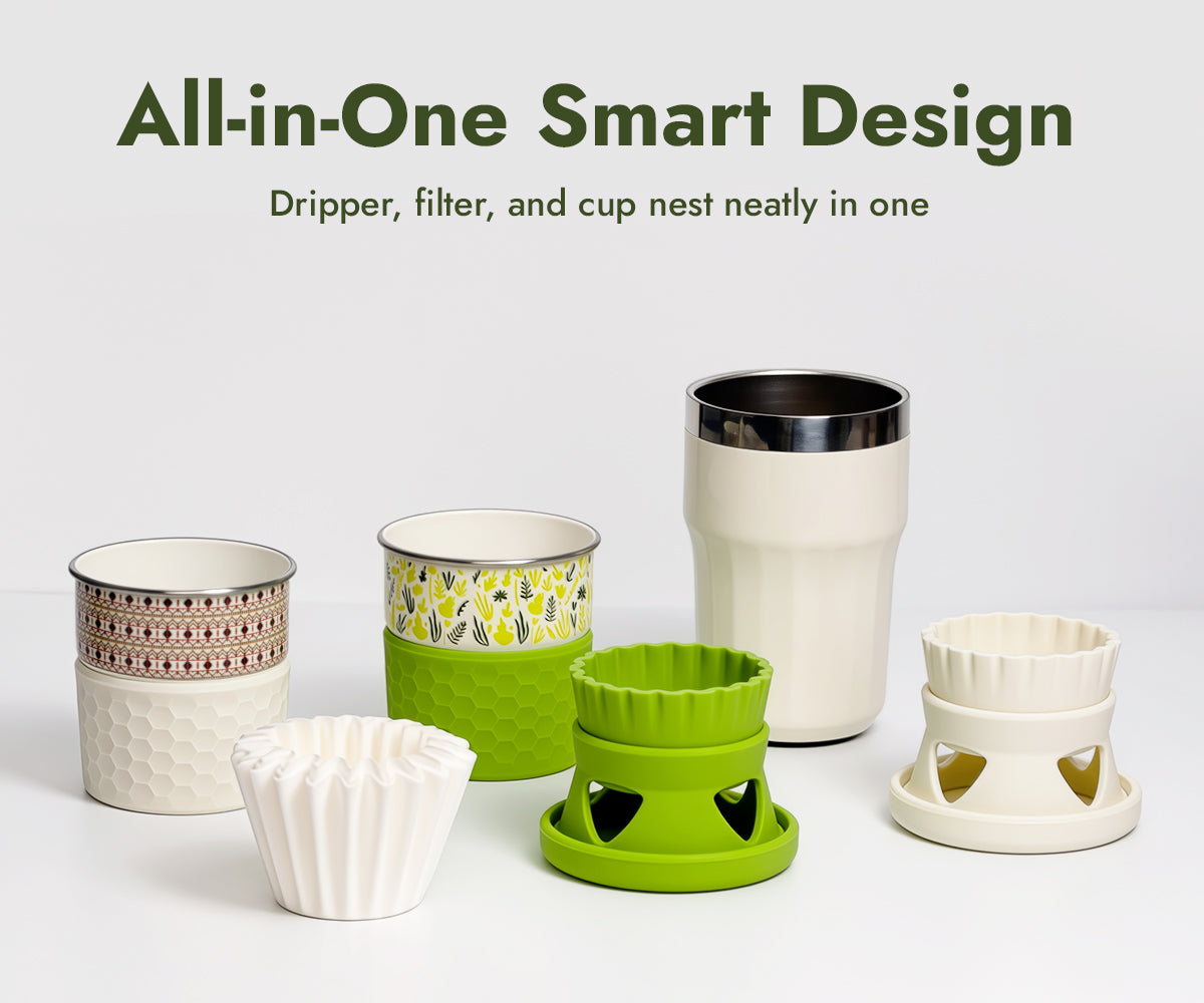 A portable pour-over set that combines your dripper, filter, and cup into one refined design — made to fit your hand, your bag, and your everyday rhythm.