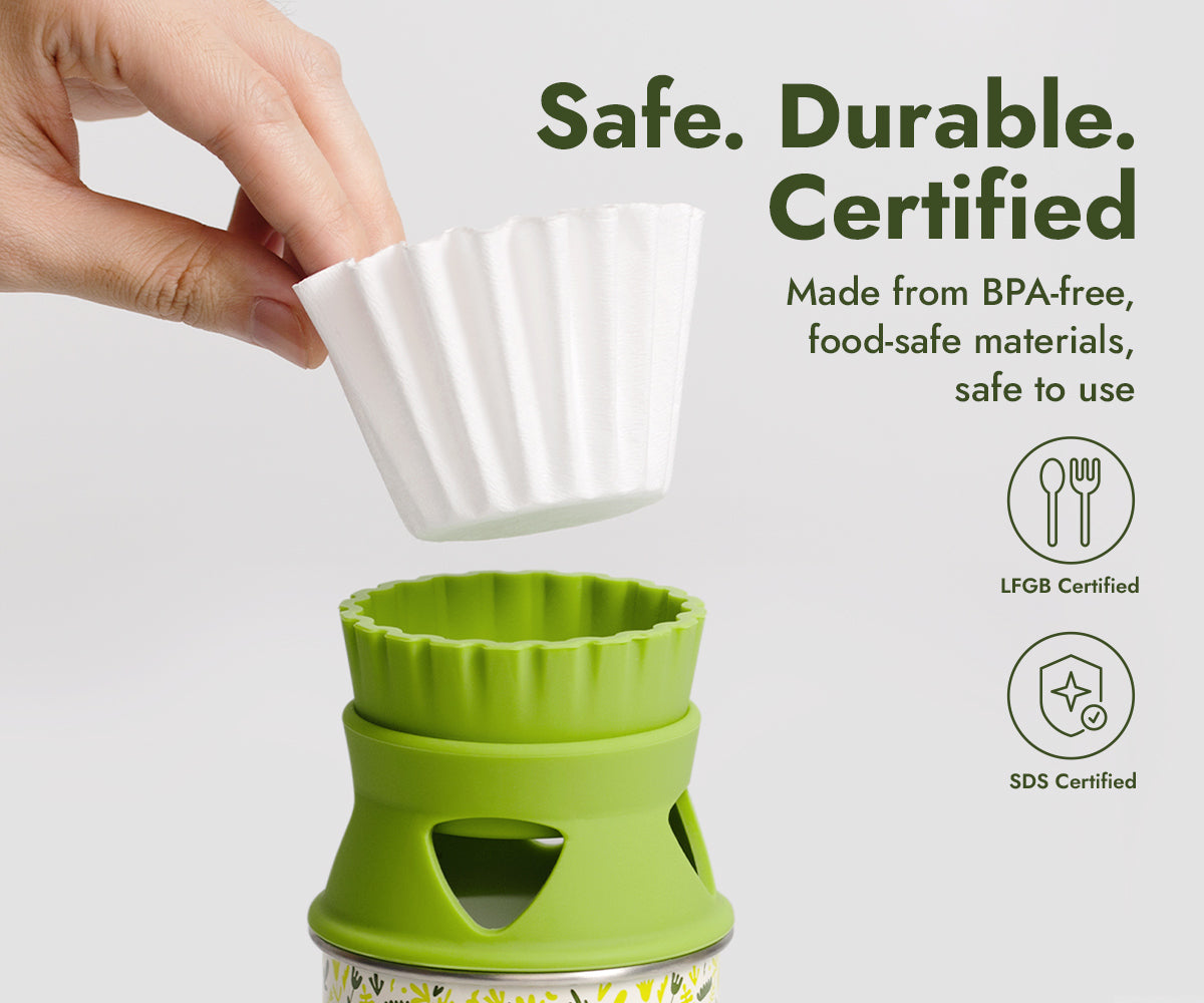 - Silicone lid and dripper are baby-grade, heat-resistant from -40°C to 200°C (-40°F to 392°F) — because pure taste deserves pure materials.