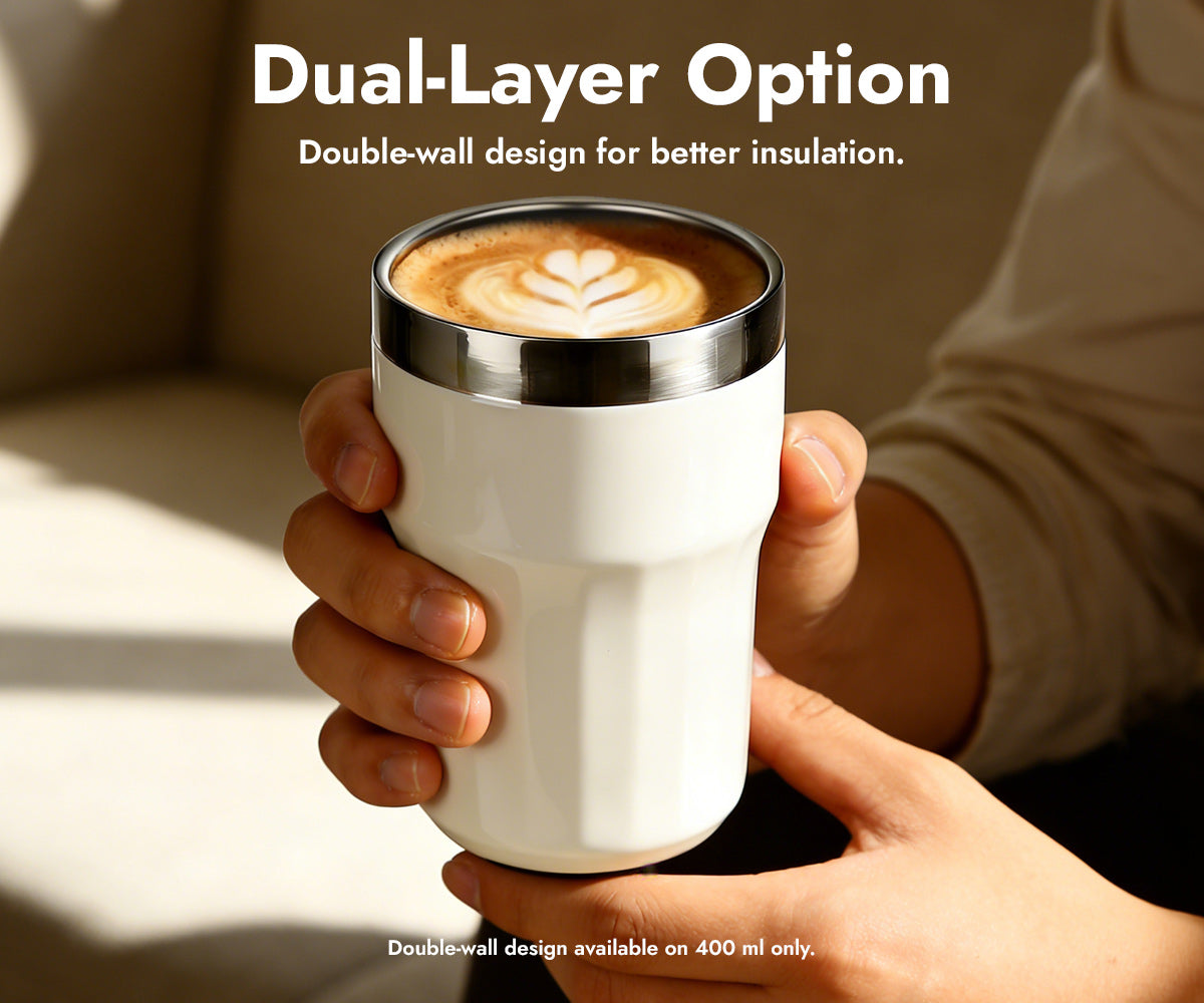 The double-wall structure keeps your coffee warm while keeping your hands cool, enhancing comfort and drinkability.
