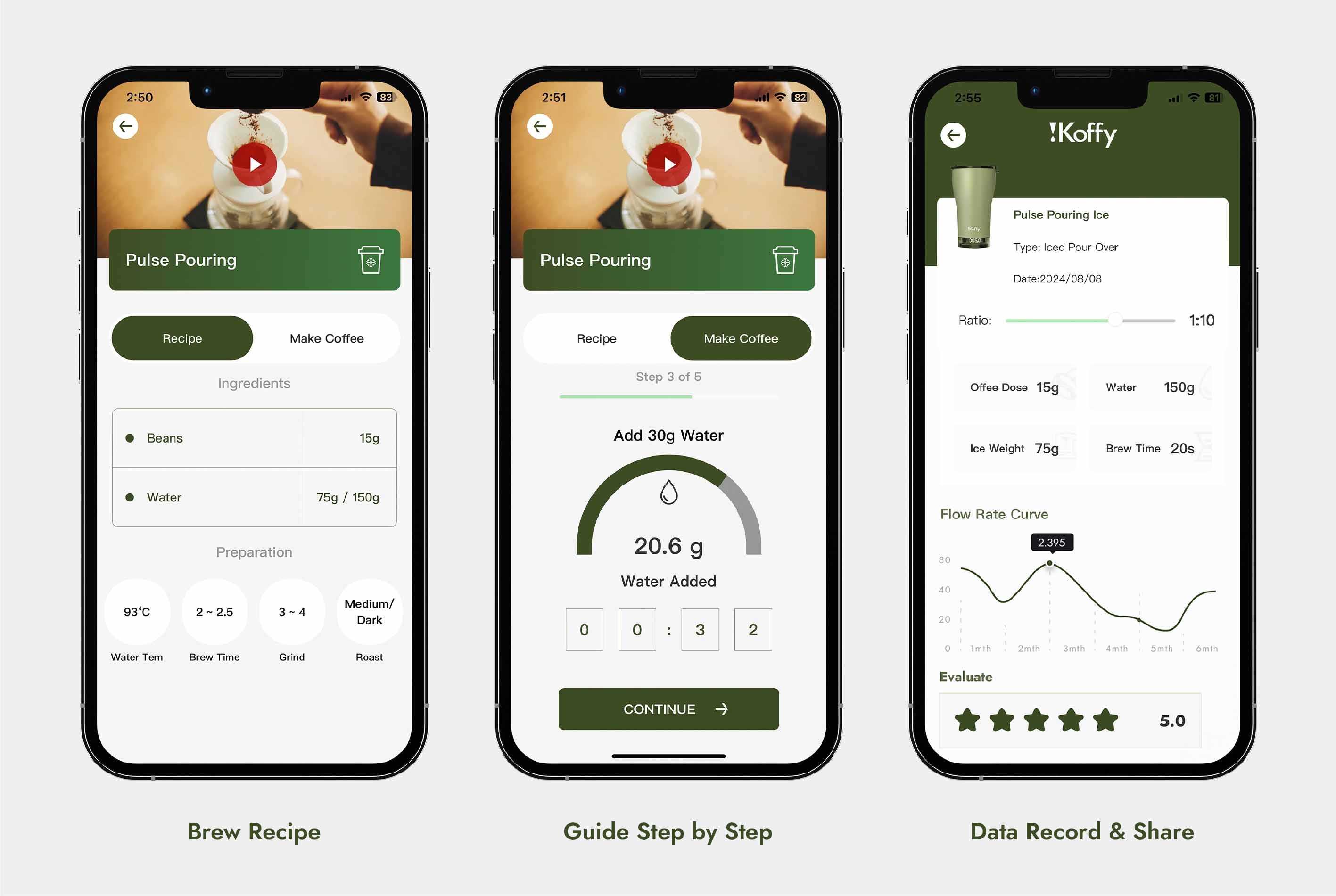 With step-by-step pour-over guides from world-champion baristas in our integrated app-iKoffy, you can effortlessly brew barista coffee. Experienced brewers can explore endless creativity in DIY mode.