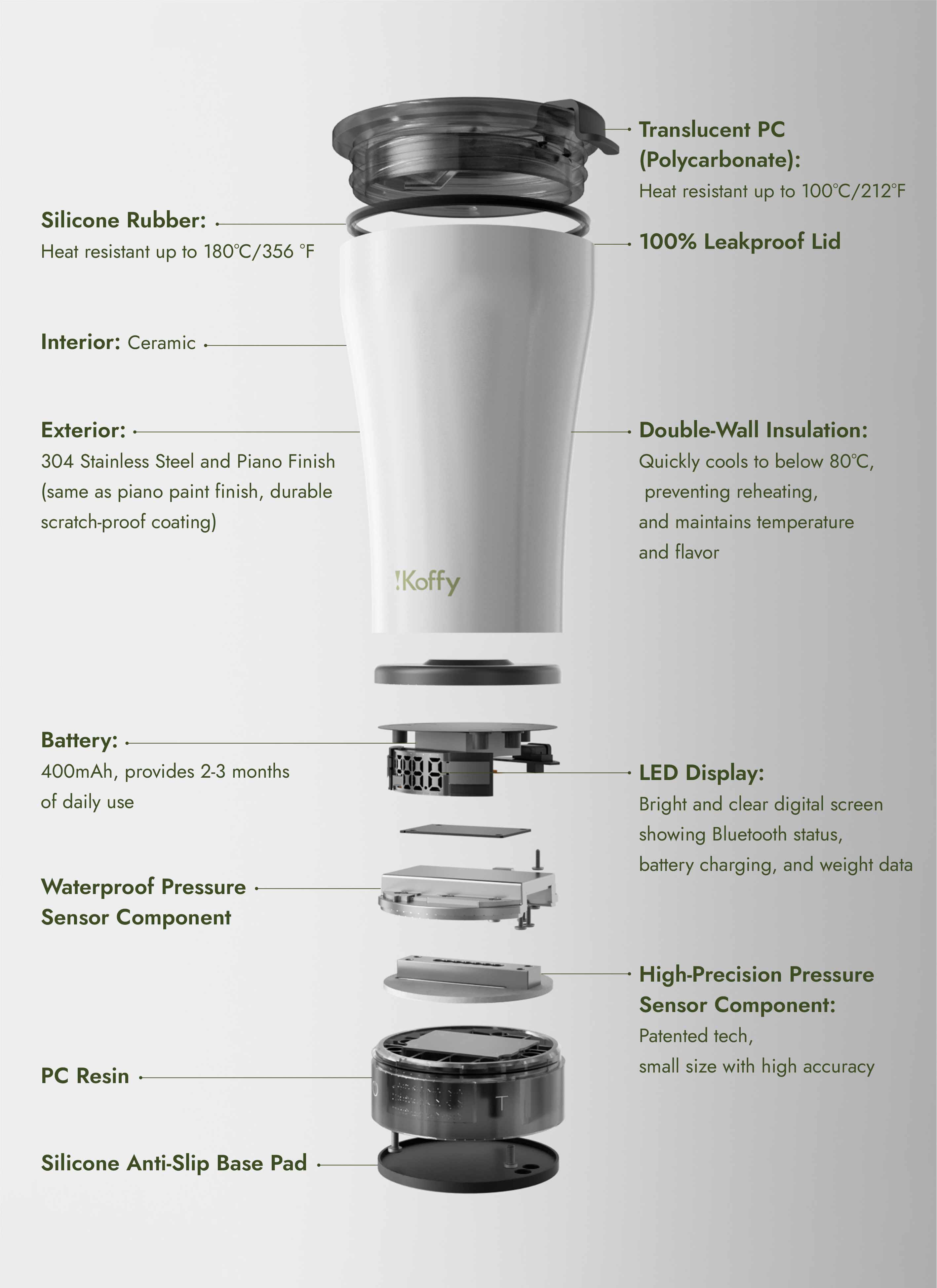 Elevate your coffee experience with our all-in-one brewing cup. The built-in scale ensures perfect ratios for coffee, water, and milk, while the unique design maximizes flavor and aroma. With integrated app guidance for easy pour-over brewing, you can master your craft effortlessly. Portable, spill-resistant, and featuring a ceramic interior for authentic taste, GoBrew delivers rich, flavorful coffee anytime, anywhere!