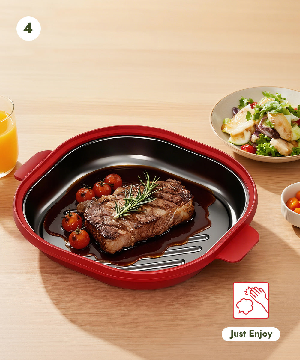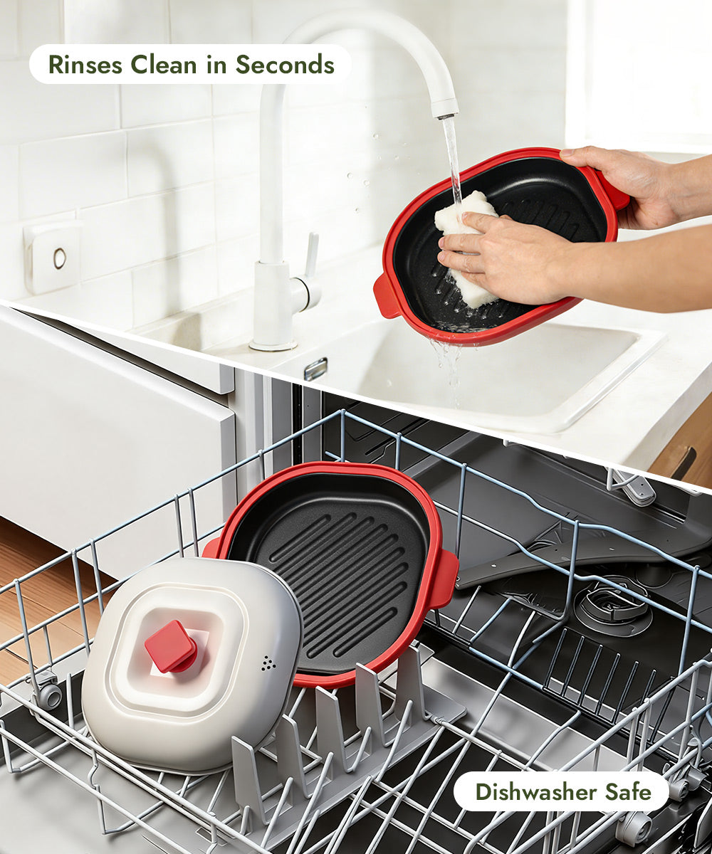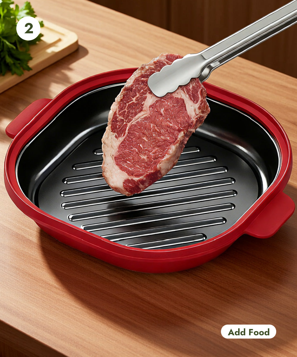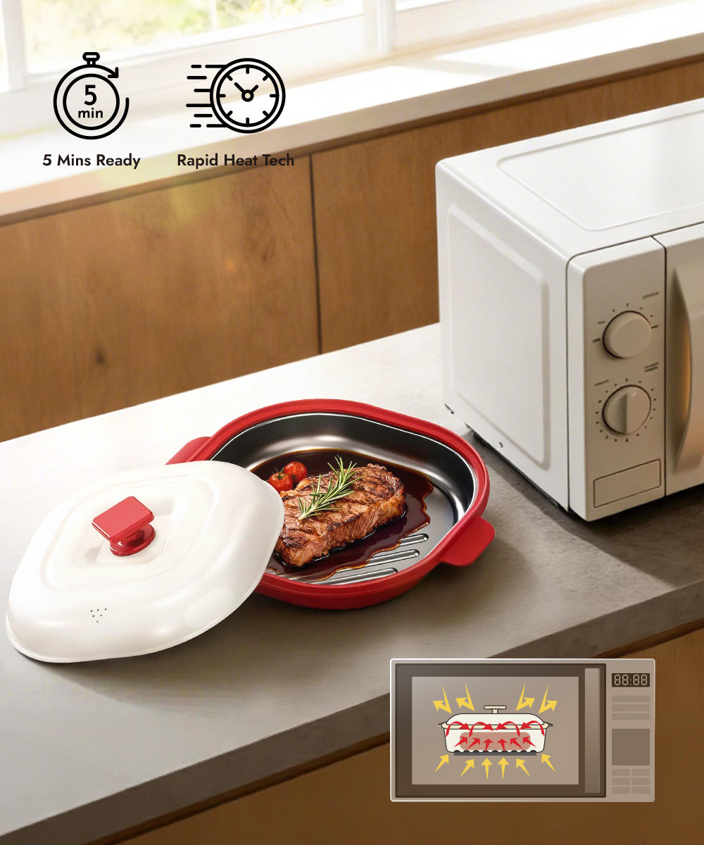Unlike ordinary microwave cookware, this grill pot reaches 356°F+ during cooking, delivering authentic grilling results in just minutes.